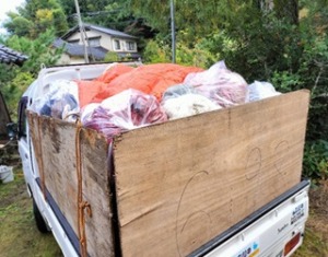 11/2(日)は全員で80人での作業となりました。平日は20~30人ですので、3連休だと人数が増えています。ご自宅の母屋と納屋からゴミを運んで軽トラに載せるという作業です。幸いにして雨がほとんど降らなかったので、ぬれずにすみました。前日までに母屋の方が9割方終わっているという話でしたが、家の中央部分の部屋はあらかた終わっていましたが、そこ以外の部屋が結構残ってました。また、今日のチームは作業の速い人が多くて、納屋の方はあっという間に片付きました。びっくりしました。