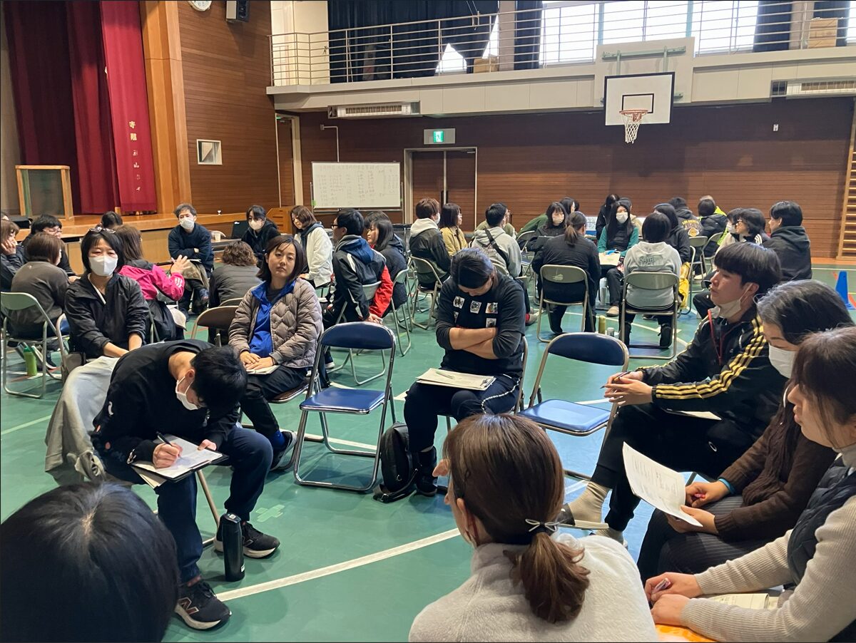 研修は、能登半島地震時に実際に避難所支援に出向いた経験やそこで起こった課題などを植村相談役が講演を行い、後半は、避難所で起こる様々な事態への対応をどうするのかとしてワークショップにて参加者で解決策を考える形で行われました。時間の関係で、養護学校にて起こりえる課題についてまで踏み込んだ協議とはなりませんでしたが、参加した先生方は「学校に通う子どもたちと避難されてきた住民に対してどう対応すれば良いのか」「保護者との連携などの課題があること」に気づかれたと感じました。学校からは、引き続き次年度も研修会を開催をしたいのでよろしくお願いしますとの声を頂き、研修会を終えました。