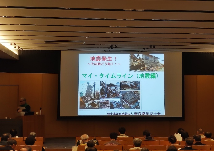 奈良県防災士会からは北村防災士が「マイタイムライン地震編」という題材の講義を行いました。