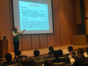 1月27日(火)、三宅町役場において町職員を対象に「災害に備える」と題した防災研修会が開催されました。この研修会には元町役場職員という縁もあって植村相談役が講師として招かれました。